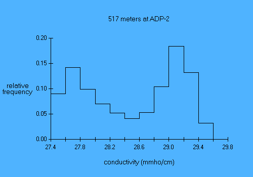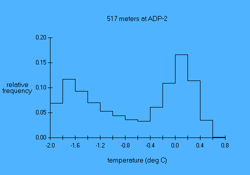 Experiment name: AnSlope 2004-05 Principal Investigator: A.L.Gordon/A.Orsi/R.D.Pillsbury Affiliation: LDEO/TAMU/OSU Mooring name: ADP-2 Mooring position: 72.066 deg S, 172.899 deg E Instrument depth 517 meters Seafloor depth: 527 meters Times: 0030 09 Mar 2004 to 2100 02 Feb 2005 Time increment: 30 minutes Instrument type: SBE-37 MicroCat parameter min mean max stddev days temp (deg C) -1.90 -0.66 0.67 0.79 330.88 cond (mmho/cm) 27.48 28.50 29.64 0.65 330.88 |